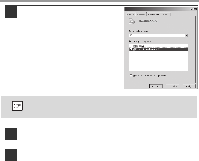 Seleccione "SC2:" del menú desplegable "Sucesos de escáner". Seleccione "Sharp
