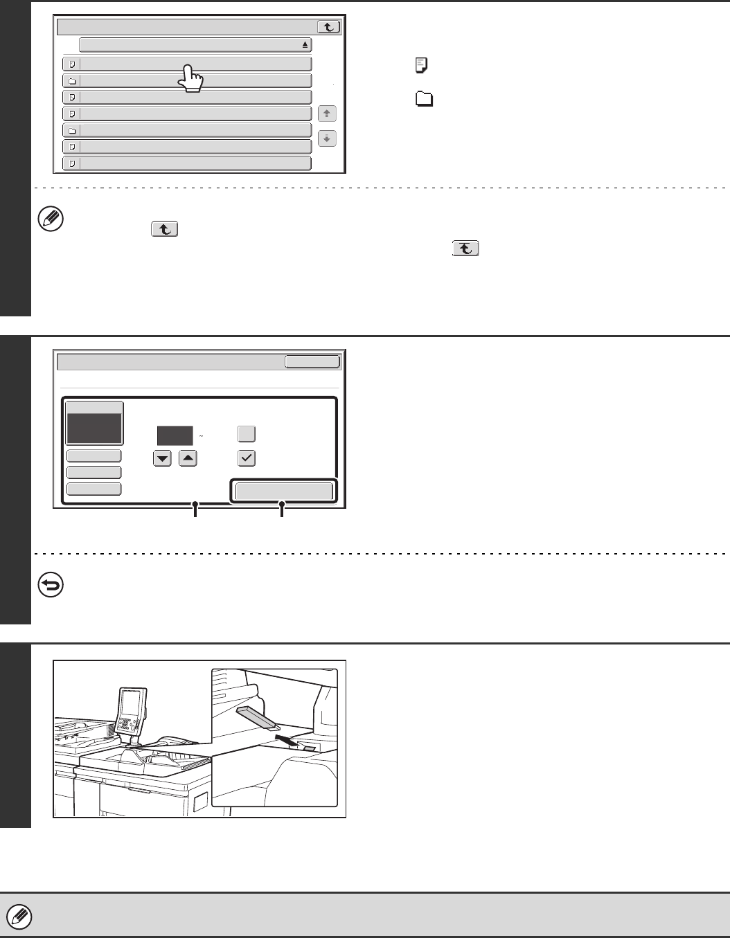 • Touch the [File or Folder Name] key (or the [File Name] key) to change the order of the files and folders displayed