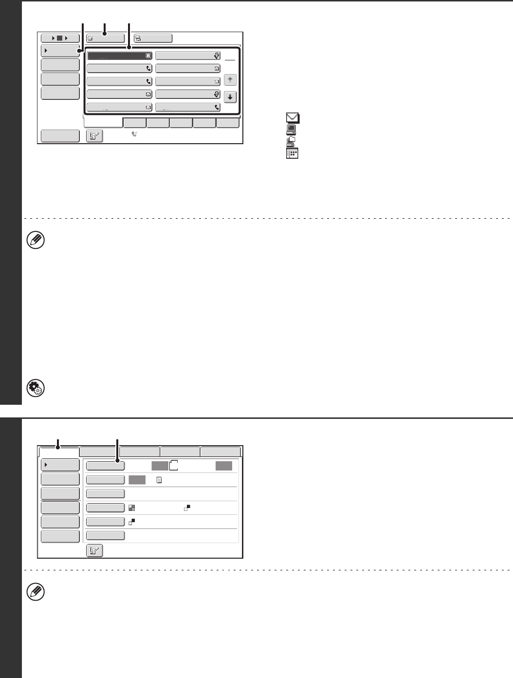 • In addition to specification by a one-touch key, a destination can also be specified by a search number. For a Scan