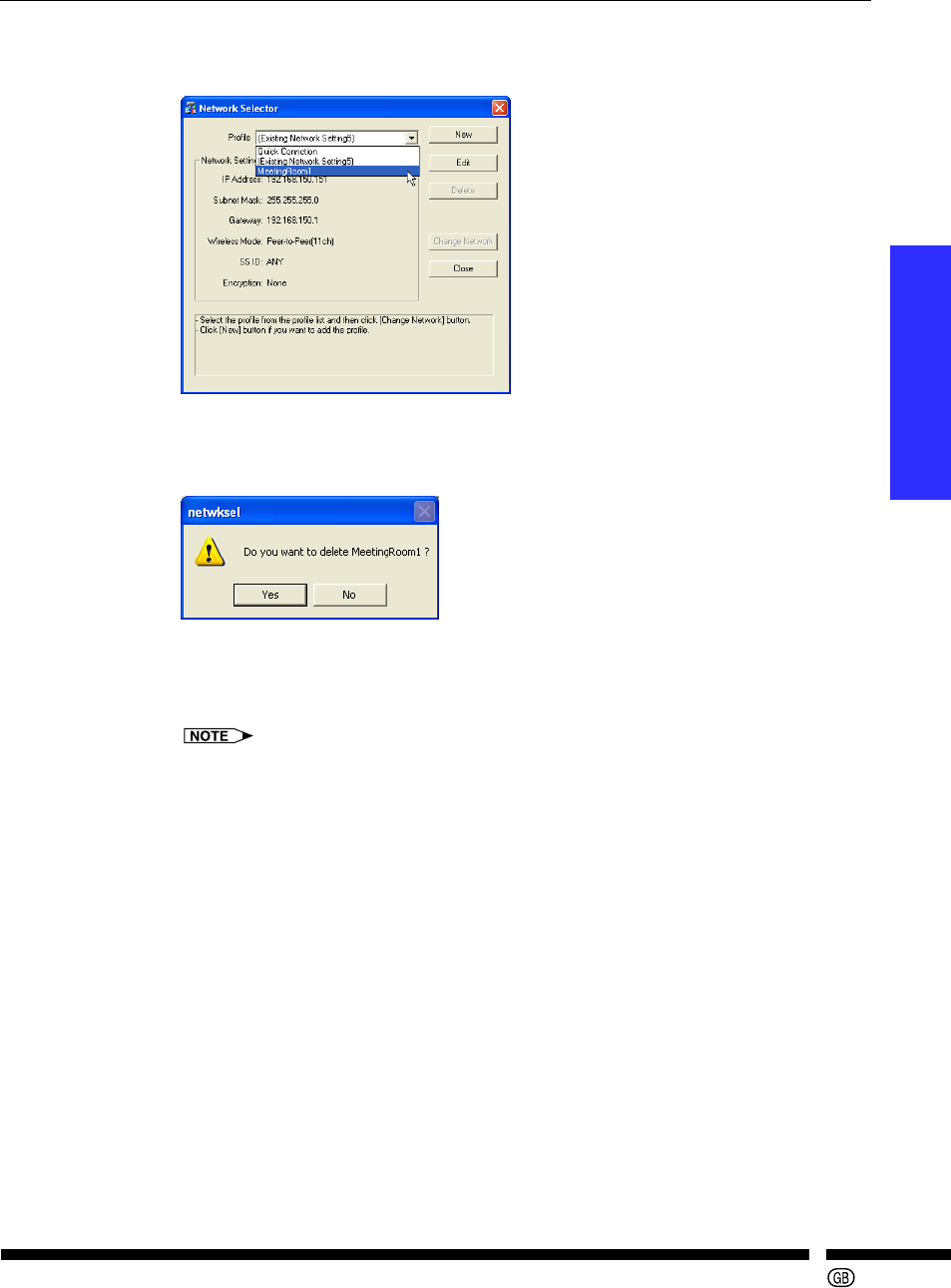 The following explains how to delete stored profiles.