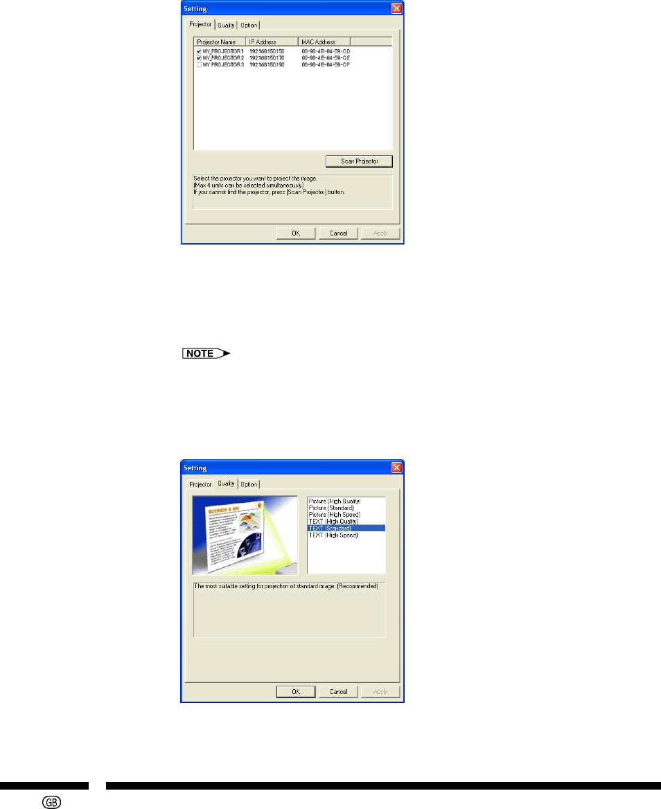 • Select the destination projector. Up to a maximum of 4 units can be selected