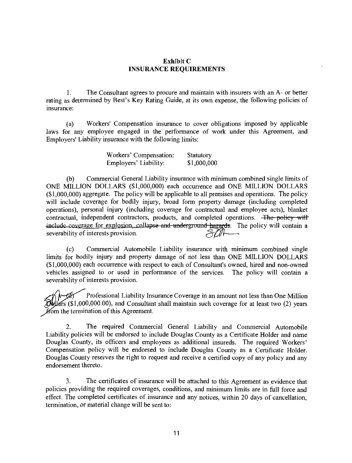Compensation policy will be endorsed to include Douglas County as a Certificate Holder.