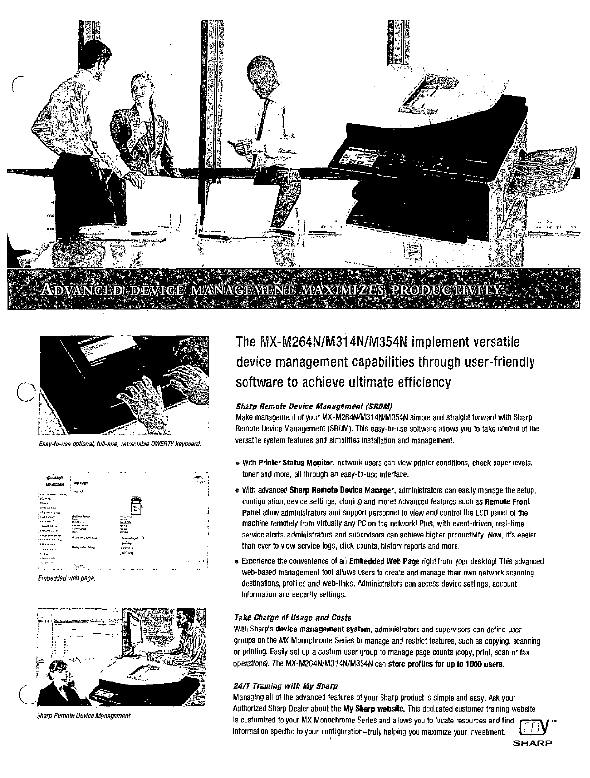 e With advanced Sharp Remote Device Manager, administrators can easily manage the setup,