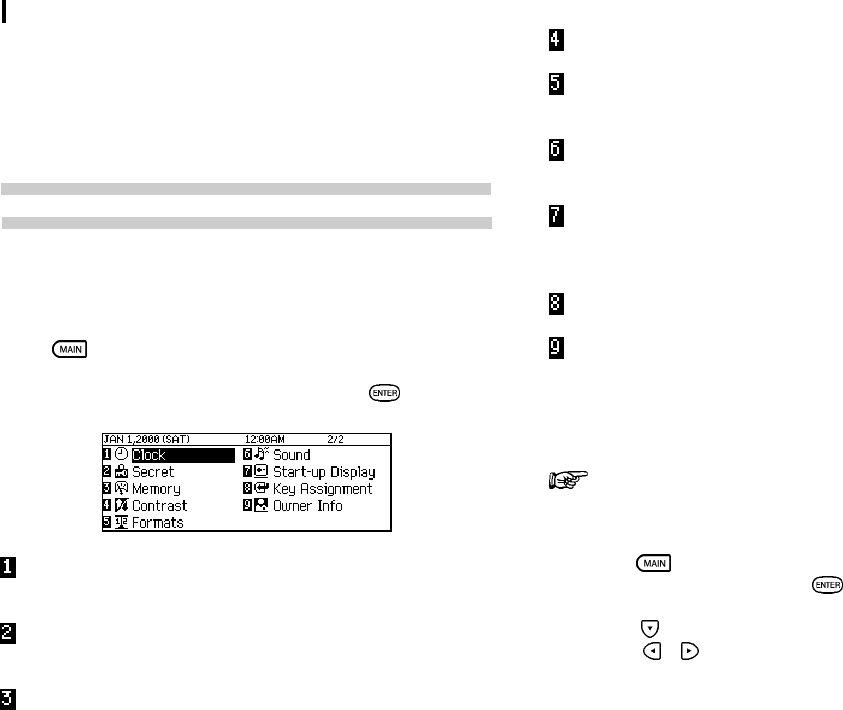 displayed each time you turn the Organizer on.