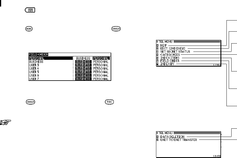 , select FIELD ORDER, then press .