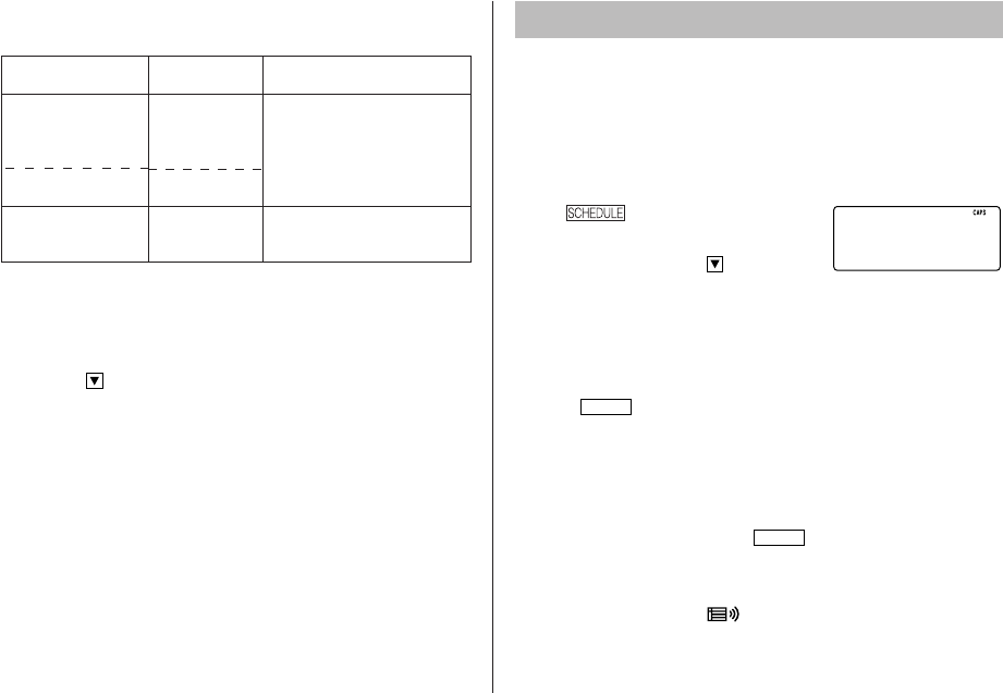 schedule entries. Beeping sounds for 1 minute when the time for a