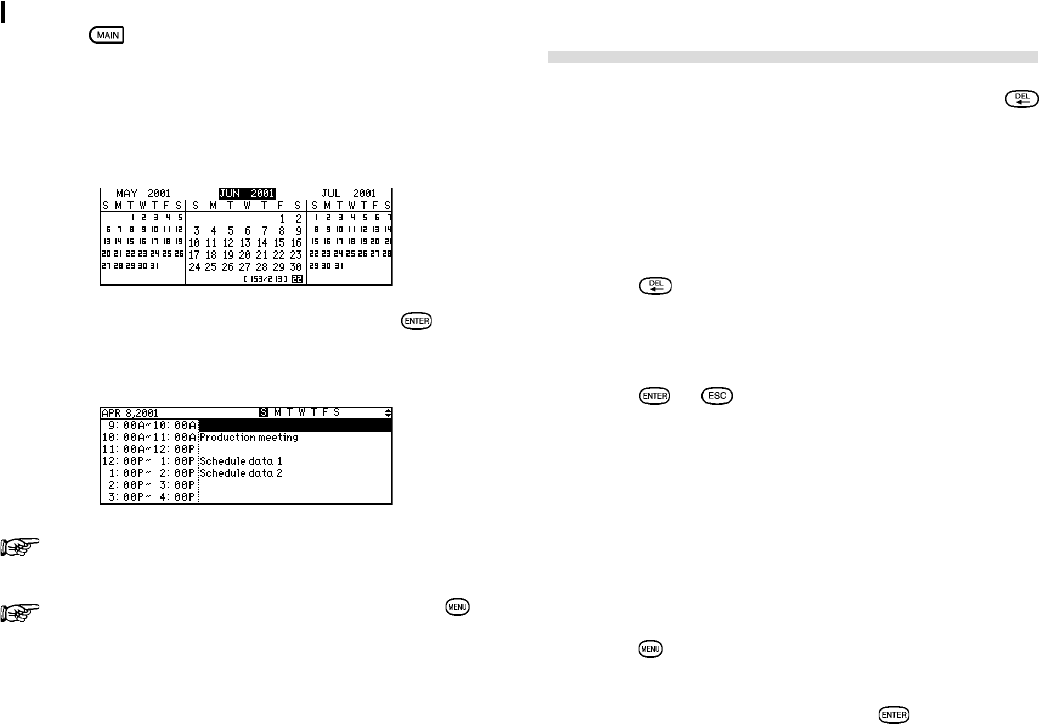 Press to enter the Main Menu and select CALENDAR.