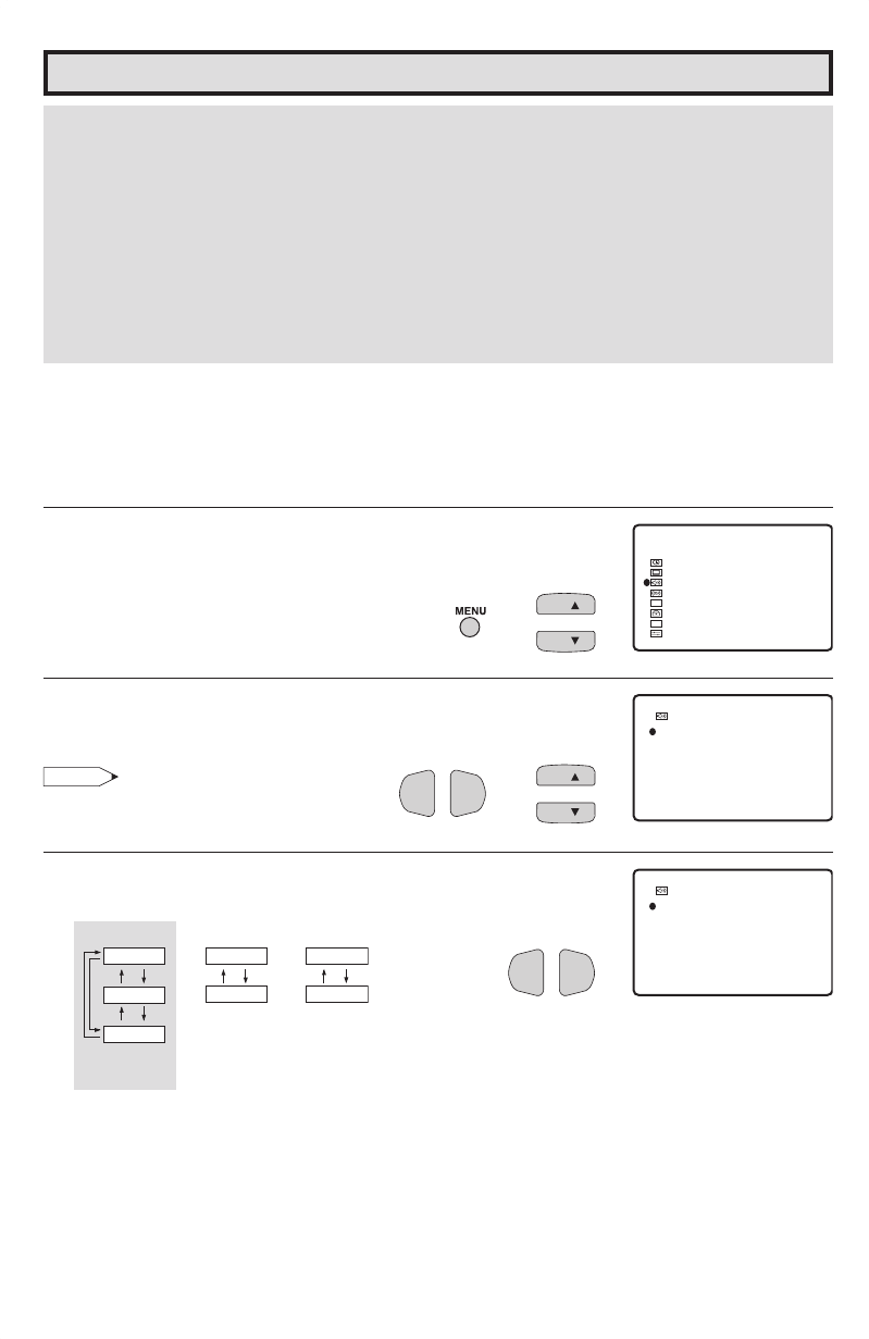 4 Press CH a/s to move the “E” mark to “MTS”, “SPEAKER”, “FAO”