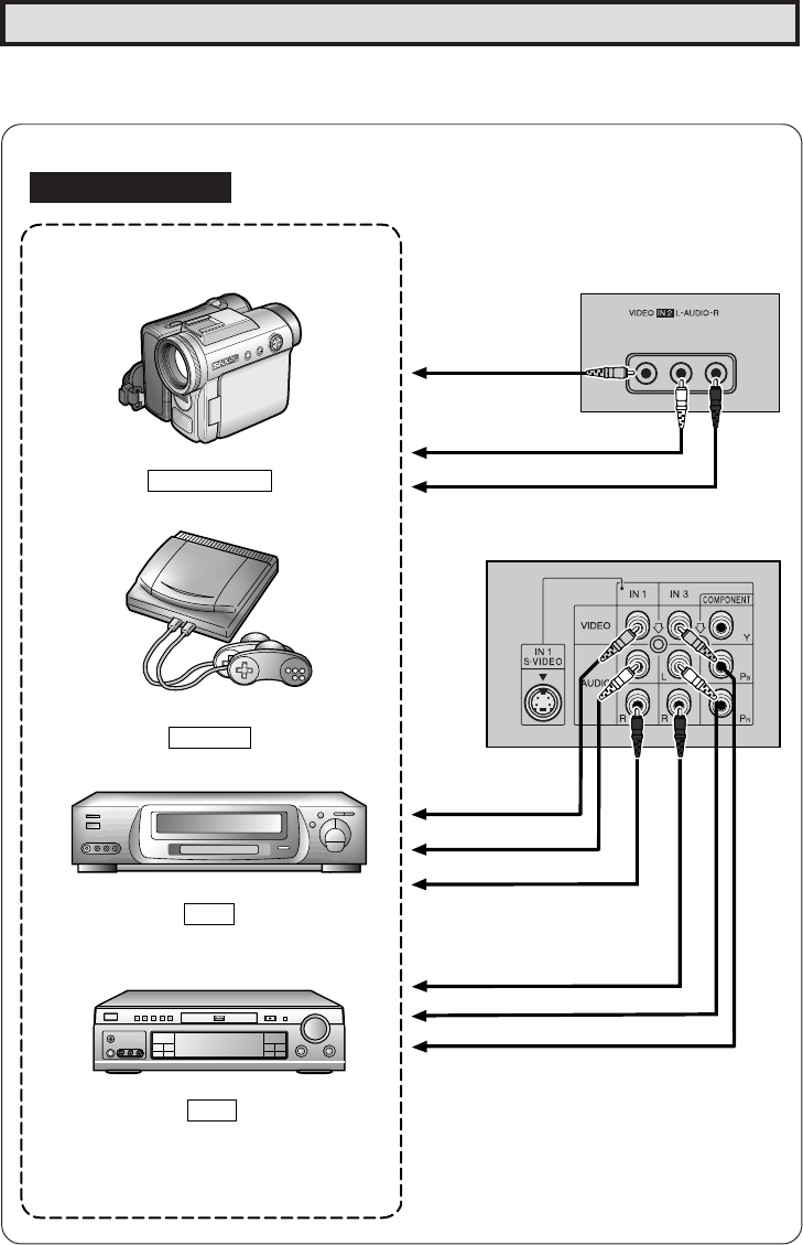 • To view video material from external video equipment, make sure to connect the equipment properly