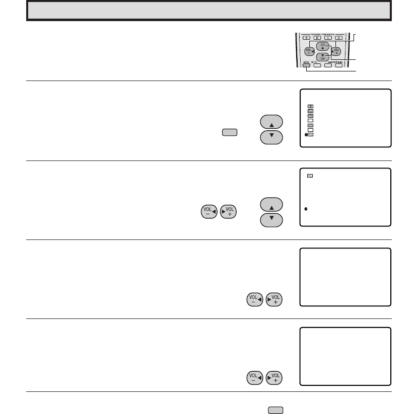 2 Press CH a/s to move the “E” mark to “SET UP”.
