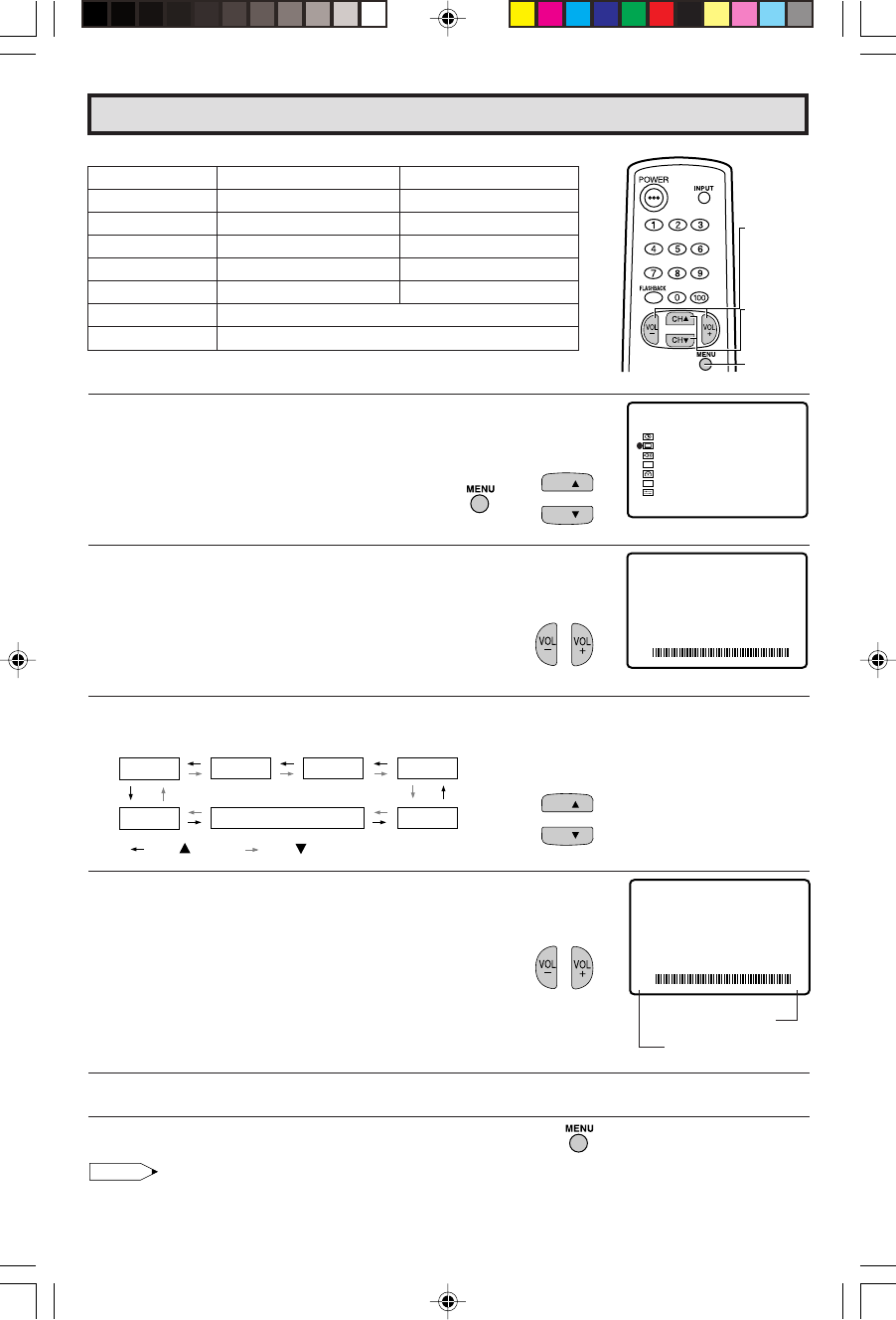 • VIDEO ADJUST setting, once set, is shared among AIR/CABLE, INPUT 1, INPUT 2, and INPUT 3