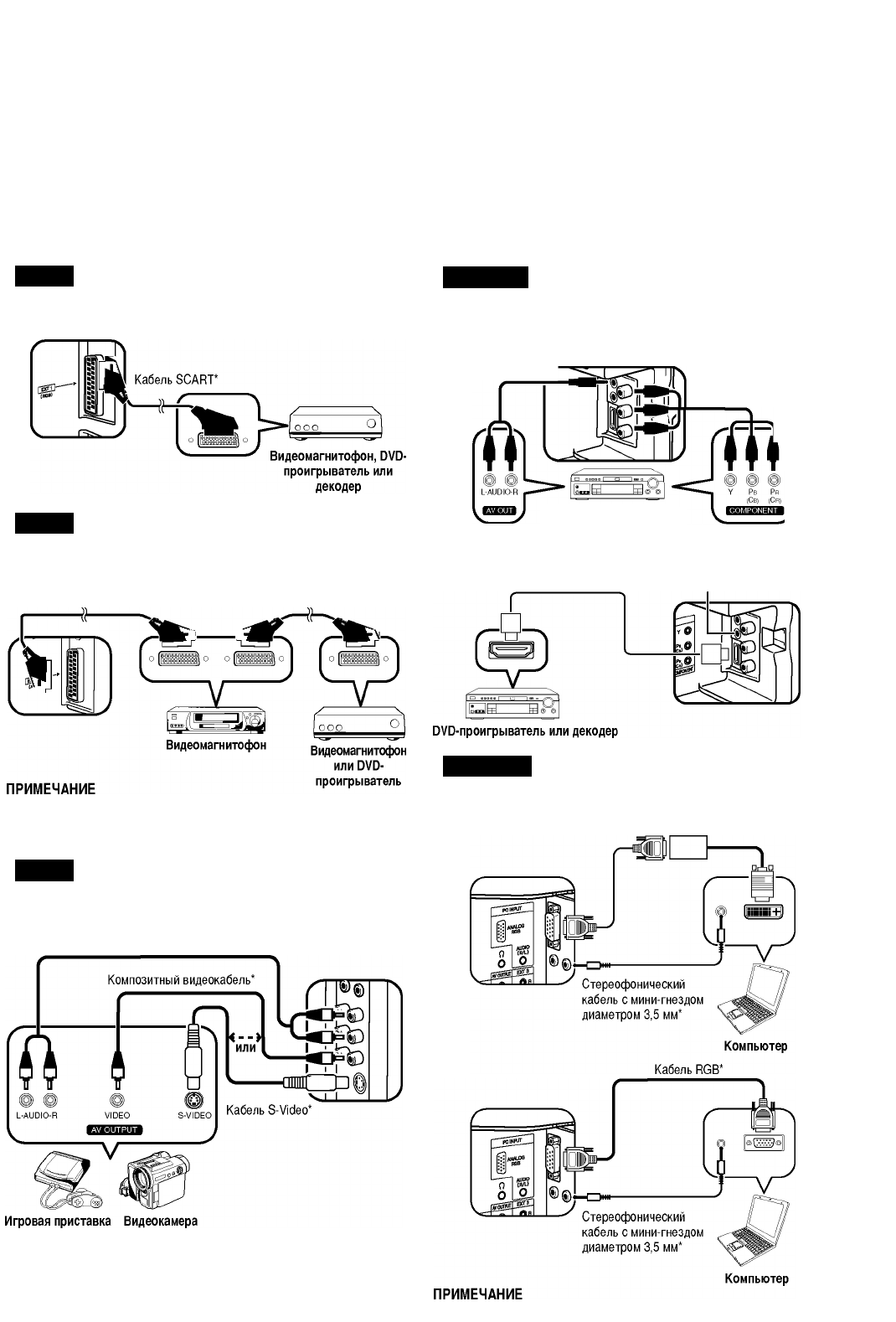 • Перед подсоединением внешней аппаратуры к Вашему телевизору см. стр. 17.