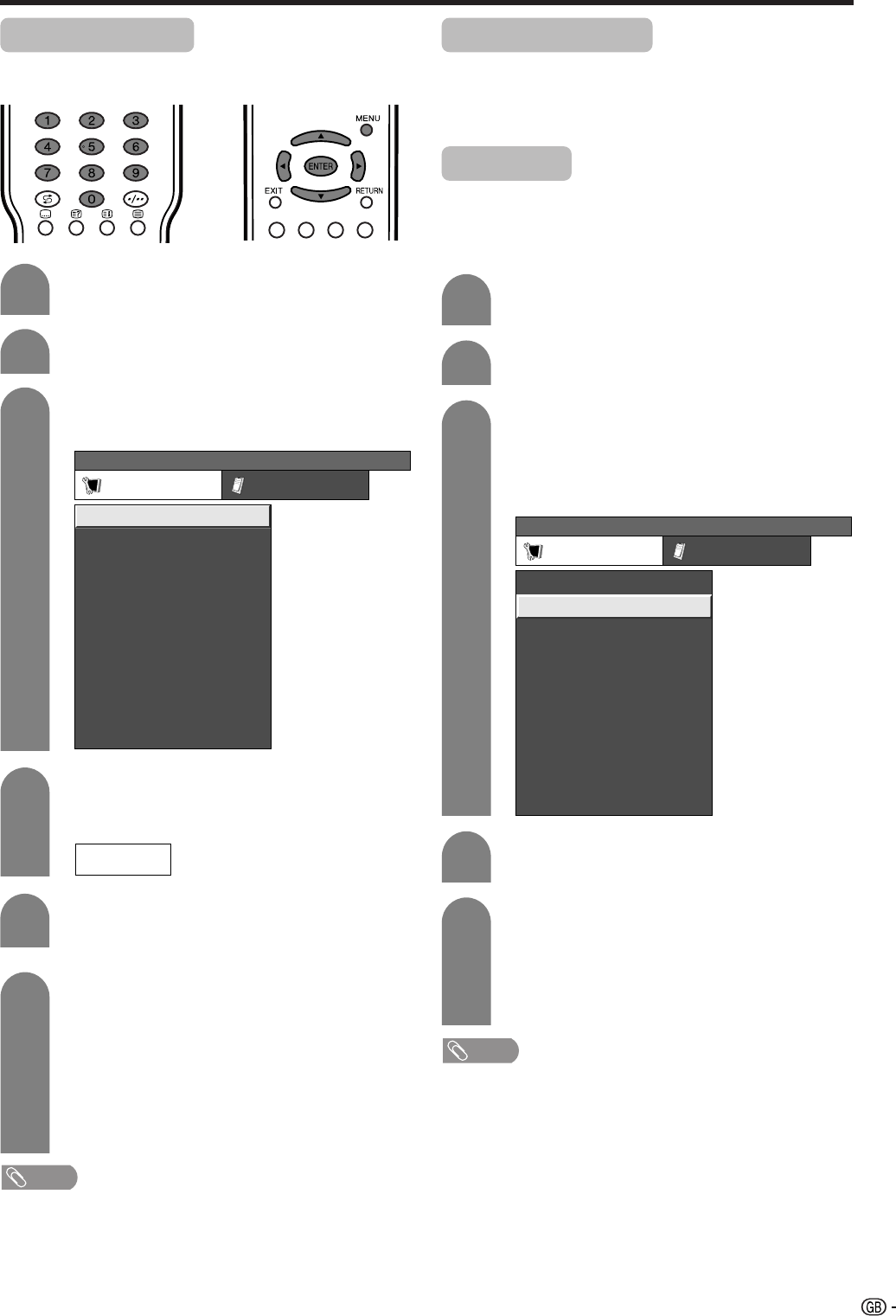 Setup. Channels can be tuned automatically or
