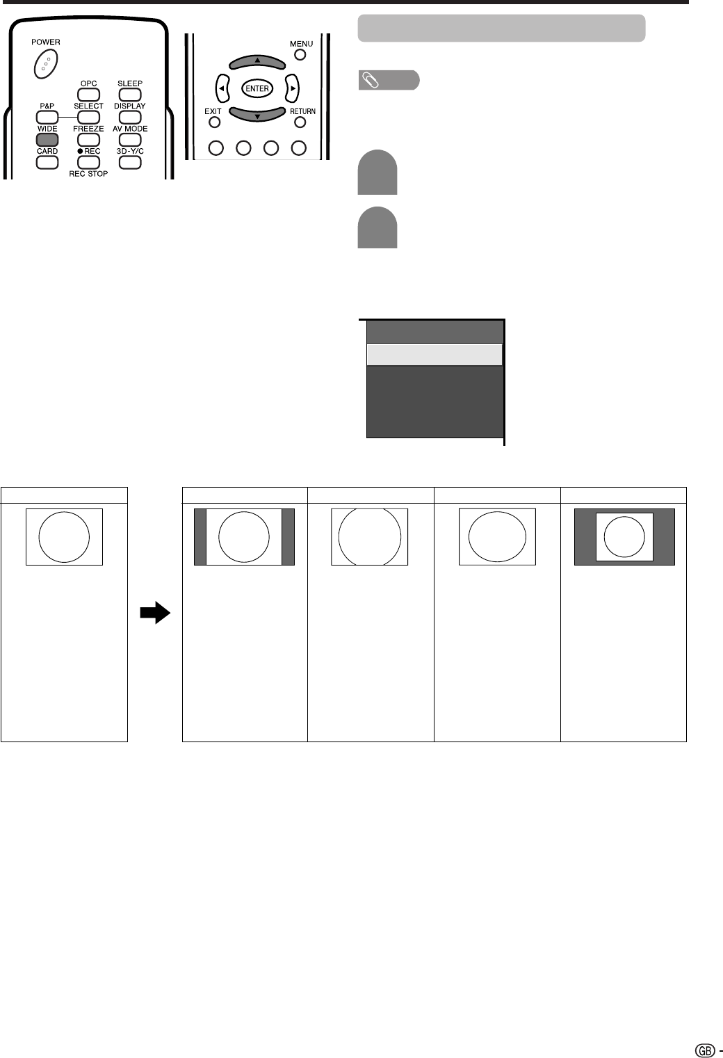 • The WIDE MODE menu displays.