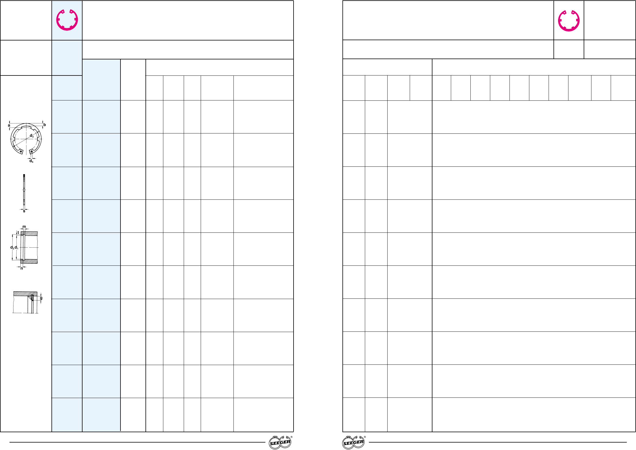 * Siehe Abschnitt 8, Seite 128 **Die Seeger-K-Ringe entsprechen in den Maßen s, d