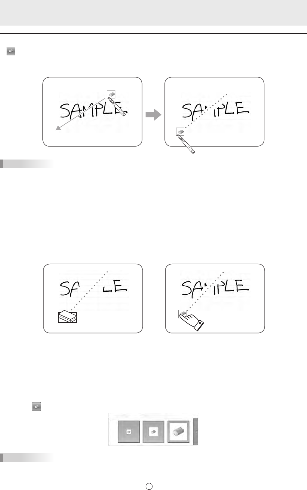 「ペン/消しゴム機能の自動切換」を設定すると(20 ページ)、「ペン1」~「ペン3」、「消しゴム」選択時にイレーザーや