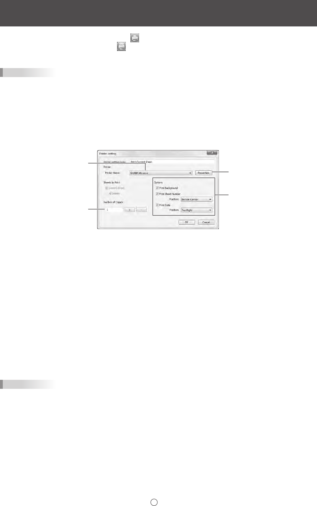 • Print Sheet Number : Select this to print page numbers, and select the “Position”.