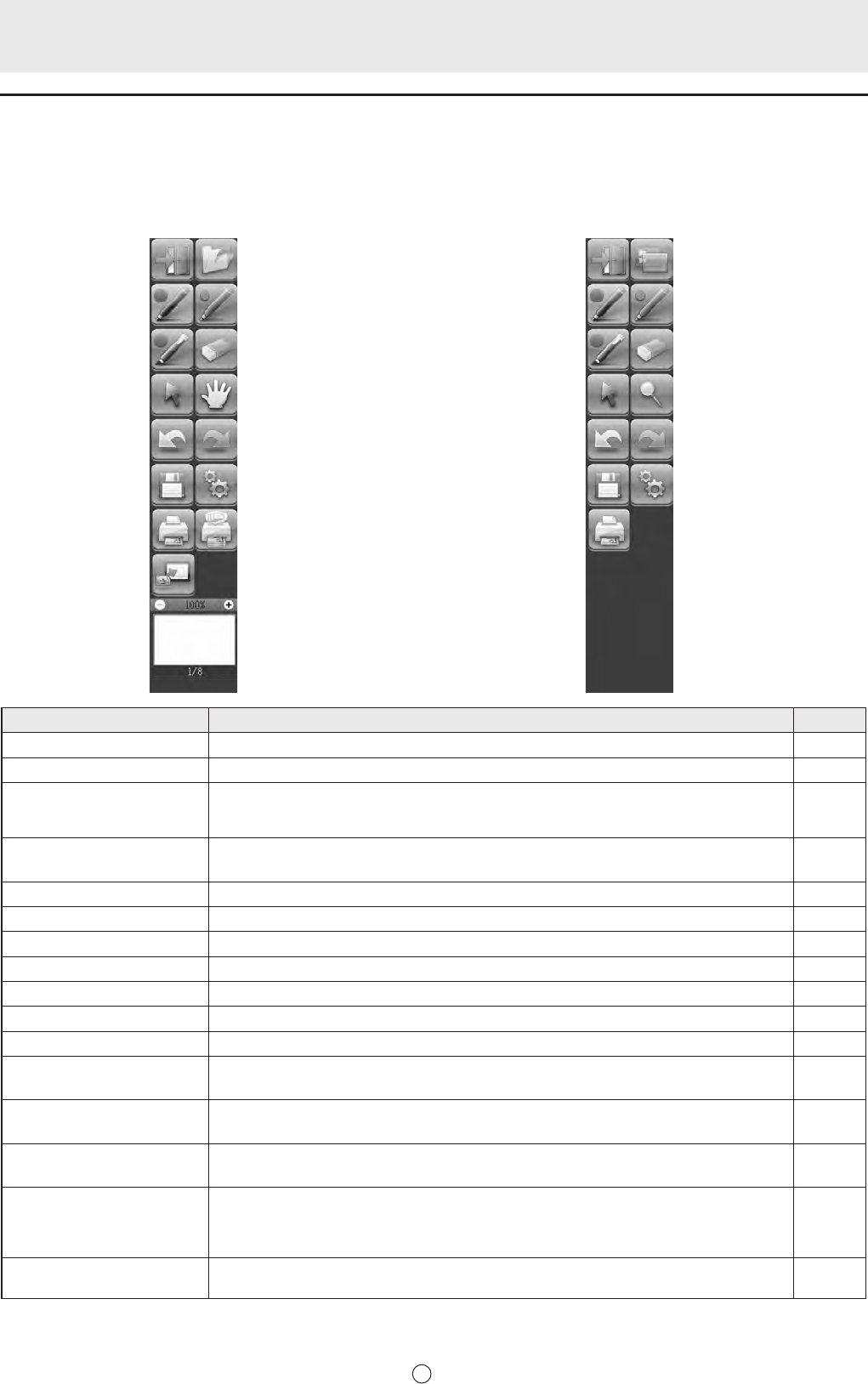 Les fonctions de la barre d’outils apparaissent sous forme de touches. Touchez une touche pour sélectionner la fonction de