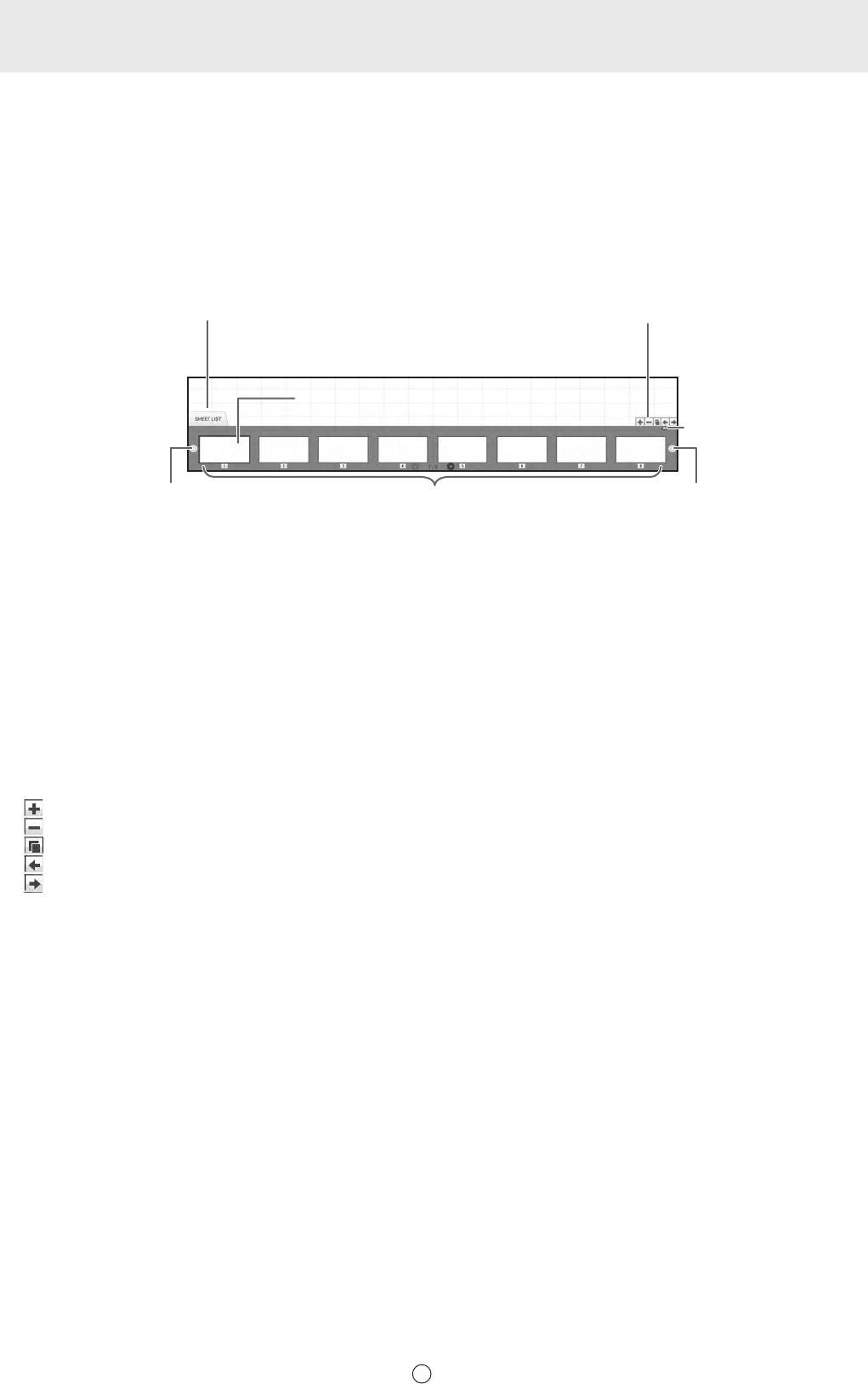 Les vignettes de chaque feuille apparaissent dans “SHEET LIST” dans le coin inférieur gauche de l’écran. Vous pouvez toucher