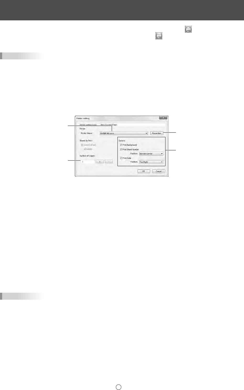 • Print Sheet Number : Sélectionnez ceci pour imprimer les numéros de pages, et sélectionnez la “Position”.