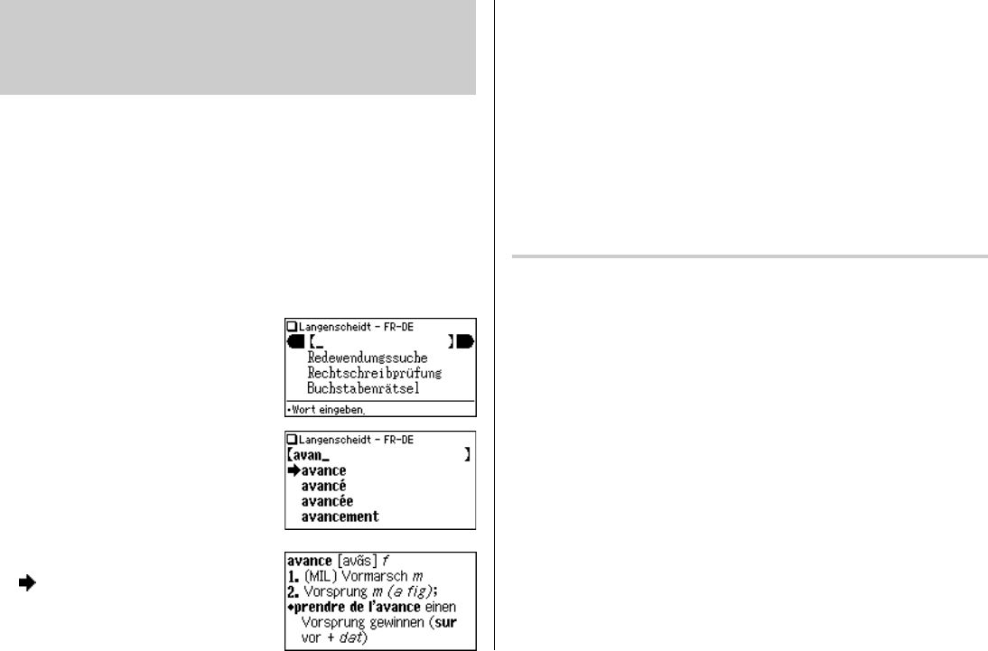 • Um nach einem neuen Wort zu suchen, geben Sie dieses einfach ein oder