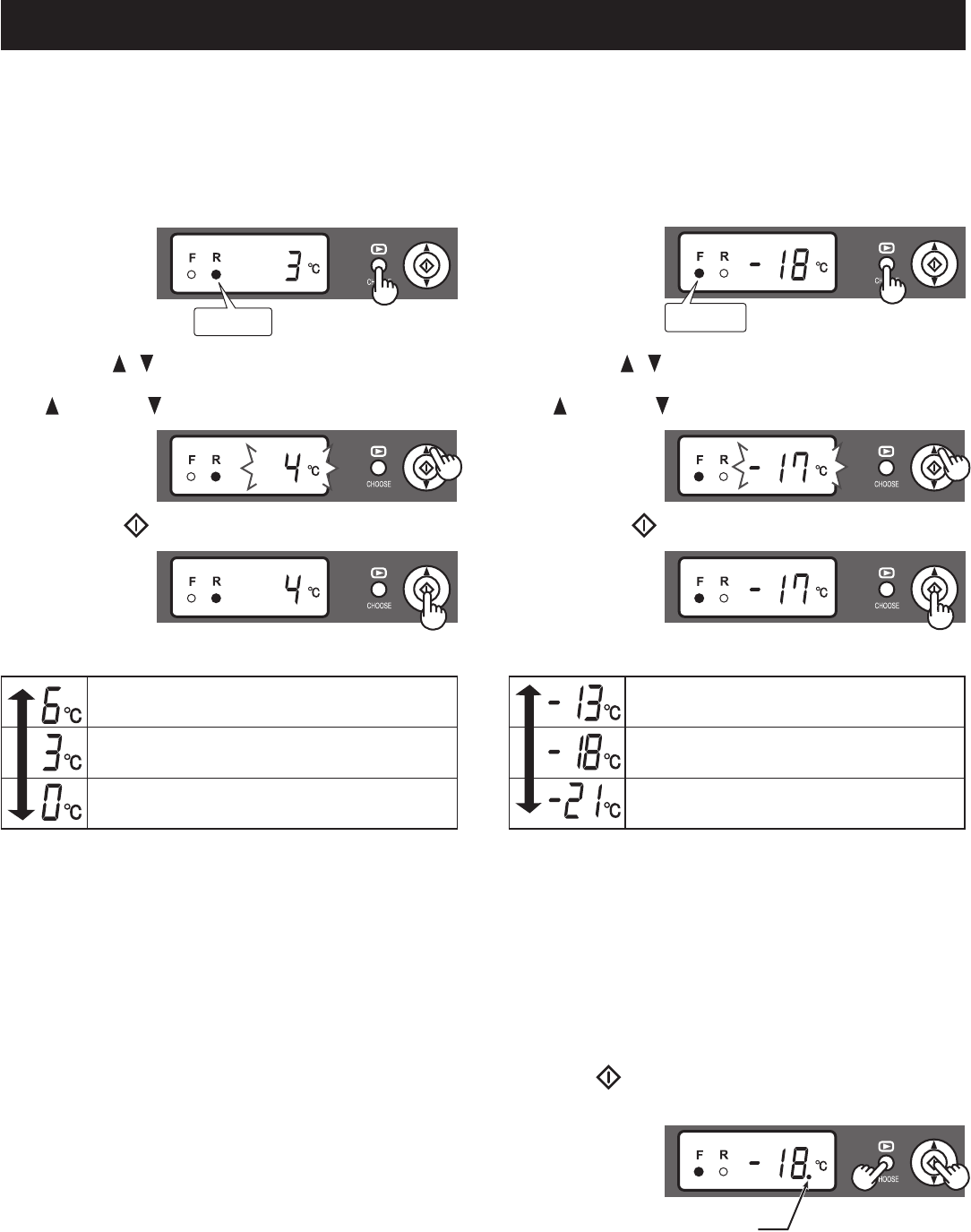Adjustable between -13°C and -21°C in steps of 1°C.