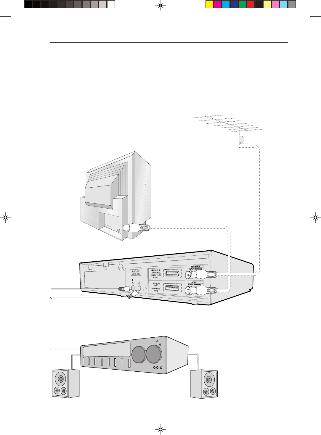 Níže uvedený obrázek znázorňuje připojení videorekordéru k audio systému. Při tomto
