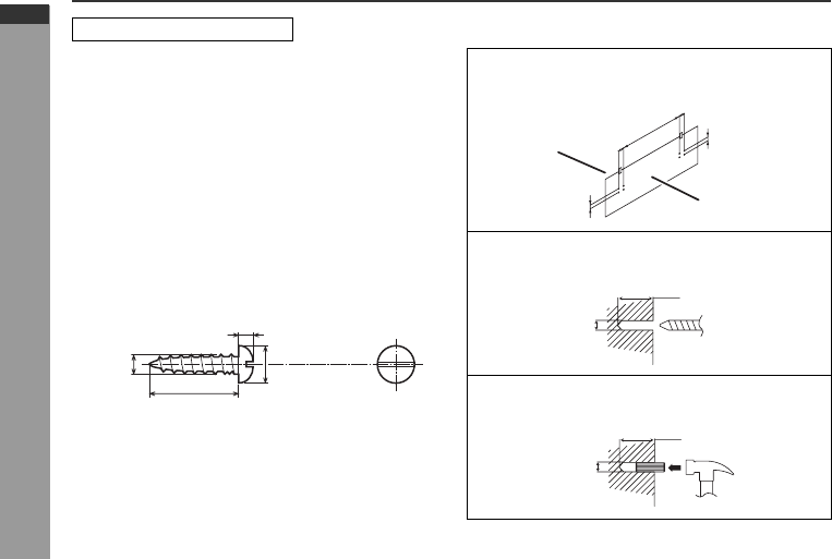 wall. Use proper screws (not supplied). See below for size and