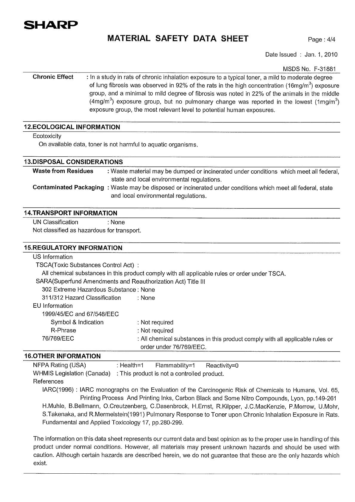 não Sharp DLPAR30L40BFE Ficha de Especificações