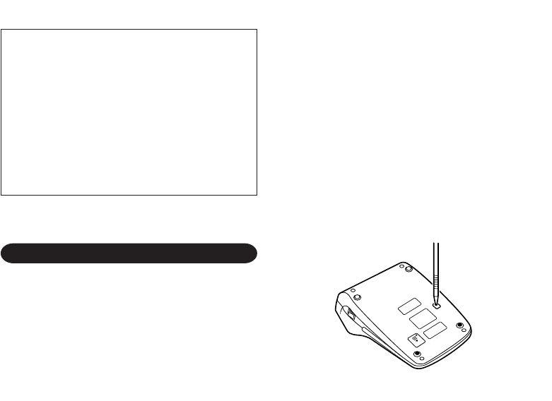 RESET na parte posterior da calculadora depois