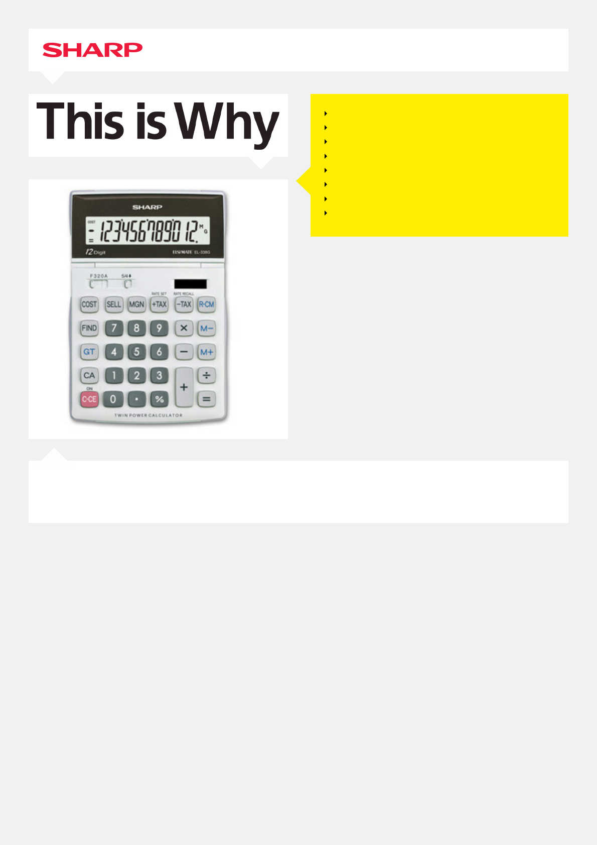 EL-338GGYLARGE ÉCRAN INCLINABLE 12 CARACTÈRESCALCUL DE COÛT/VENTE/MARGECALCUL DE TAXESGRAND TOTAL (GT)RÉGLAGE DÉCIMALTOUCHE POURCENTAGEFACTEUR CONSTAN