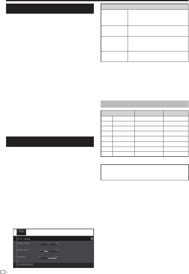 Eingangsbuchse „PC-IN“ eingestellt werden.