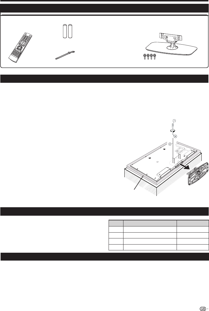 • Be sure to follow the instructions. Incorrect installation of the stand may result in the TV falling over.