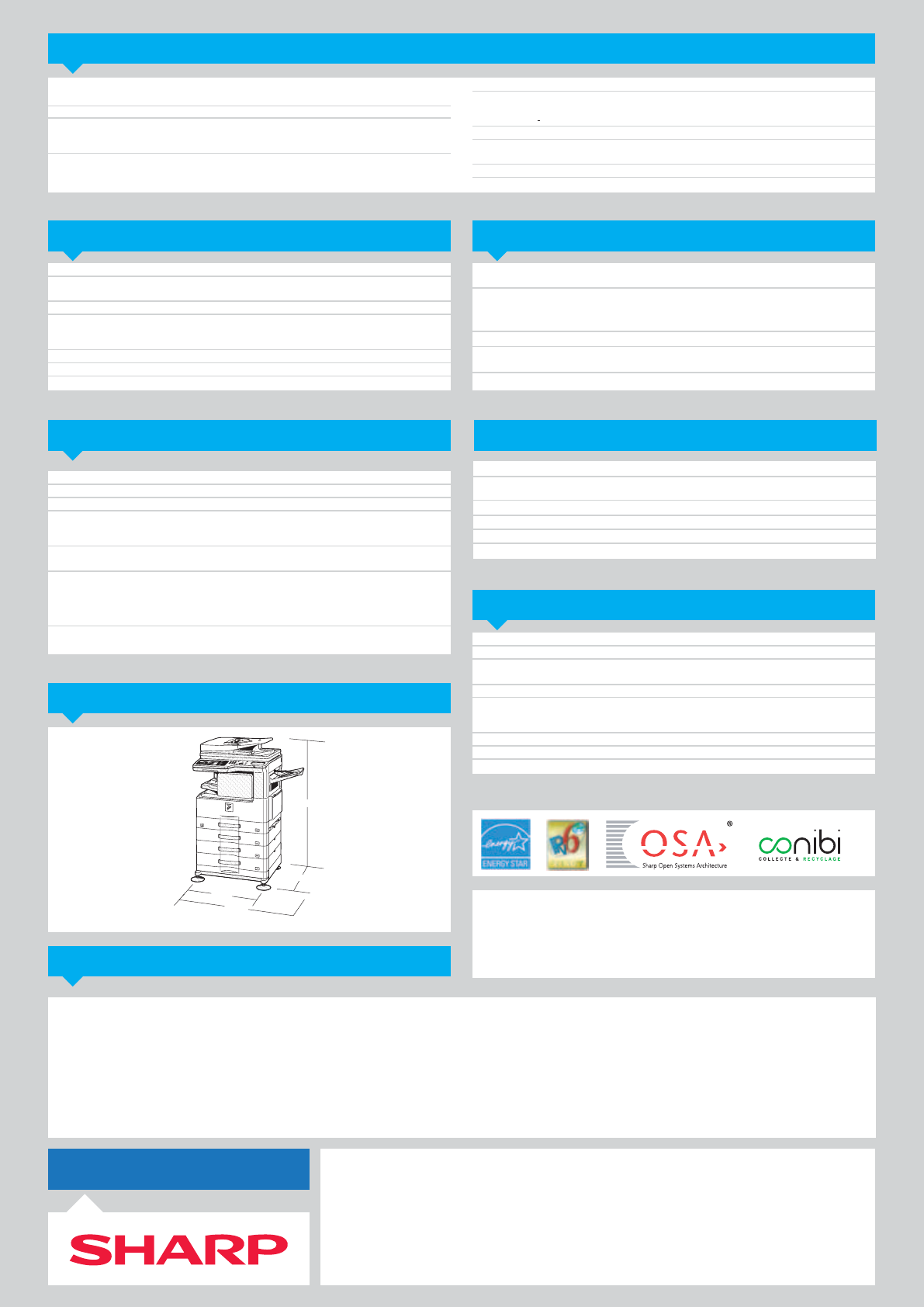 Mesuré avec la mire standard Sharp (A4 en noir & blanc à 6 % de taux de couverture). La capacité de stockage est inférieure pour les pages en couleur.
