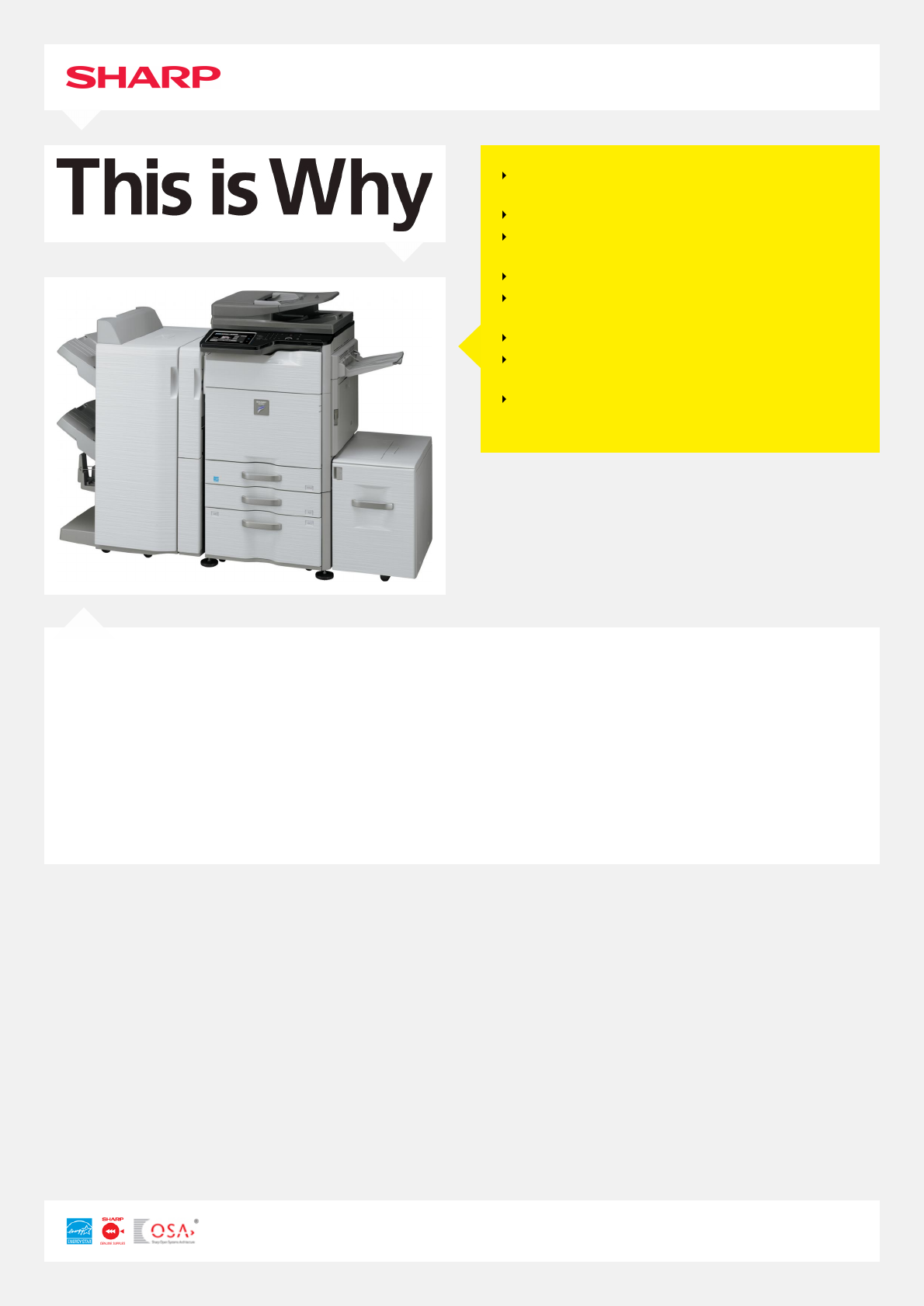 le MXM564NSF permet le cryptage et l’effacement de vos données dès sa configuration standard. Enfin, la technologie Sharp