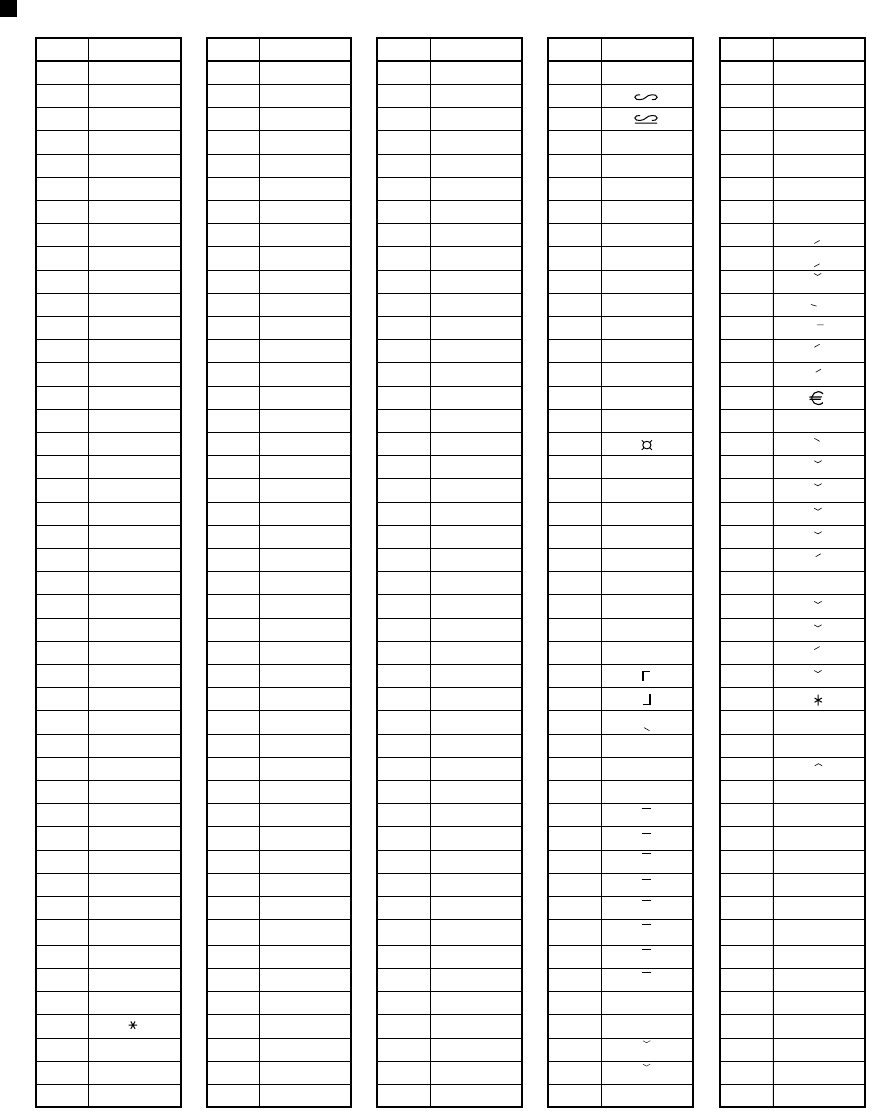 Table des codes de caractères alphanumériques
